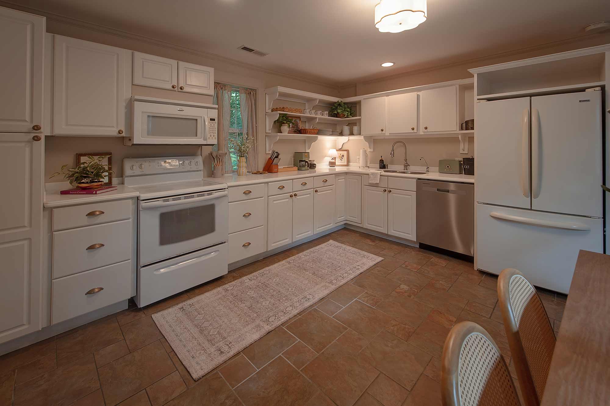 We kept some of the indoor jacuzzi tubs in certain cottages, while outfitting others with back porch hot tubs. We revamped the community amenities by building a stone firepit, giving the pool a face lift, and redecorating the dining room to reflect our innkeepers signature welcoming touch.