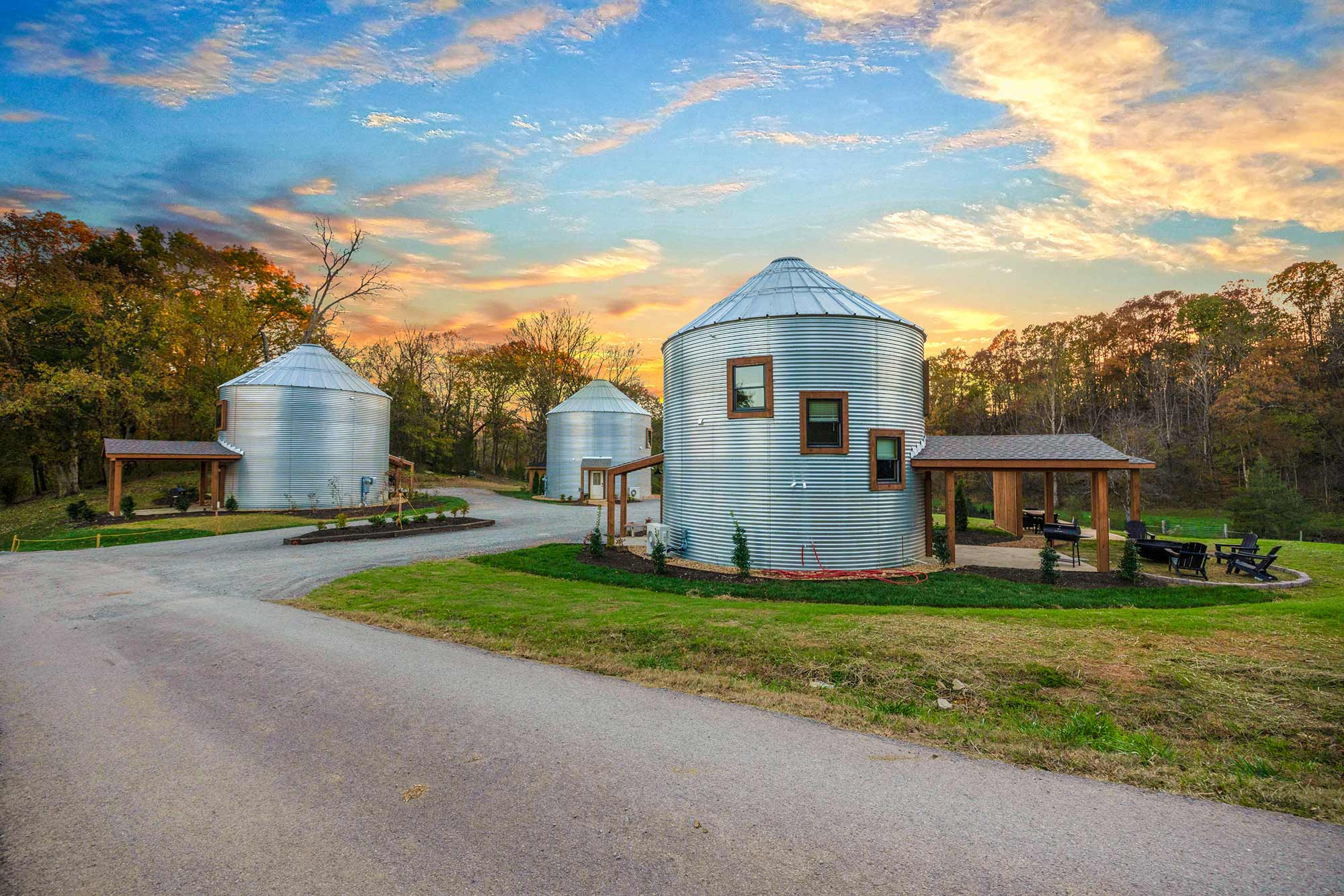 These converted grain bin silos offer a true luxury getaway nestled right on a working regenerative farm located just 15 minutes from downtown Chattanooga. Each silo is unique in its handcrafted interiors, offering you a one of kind stay.