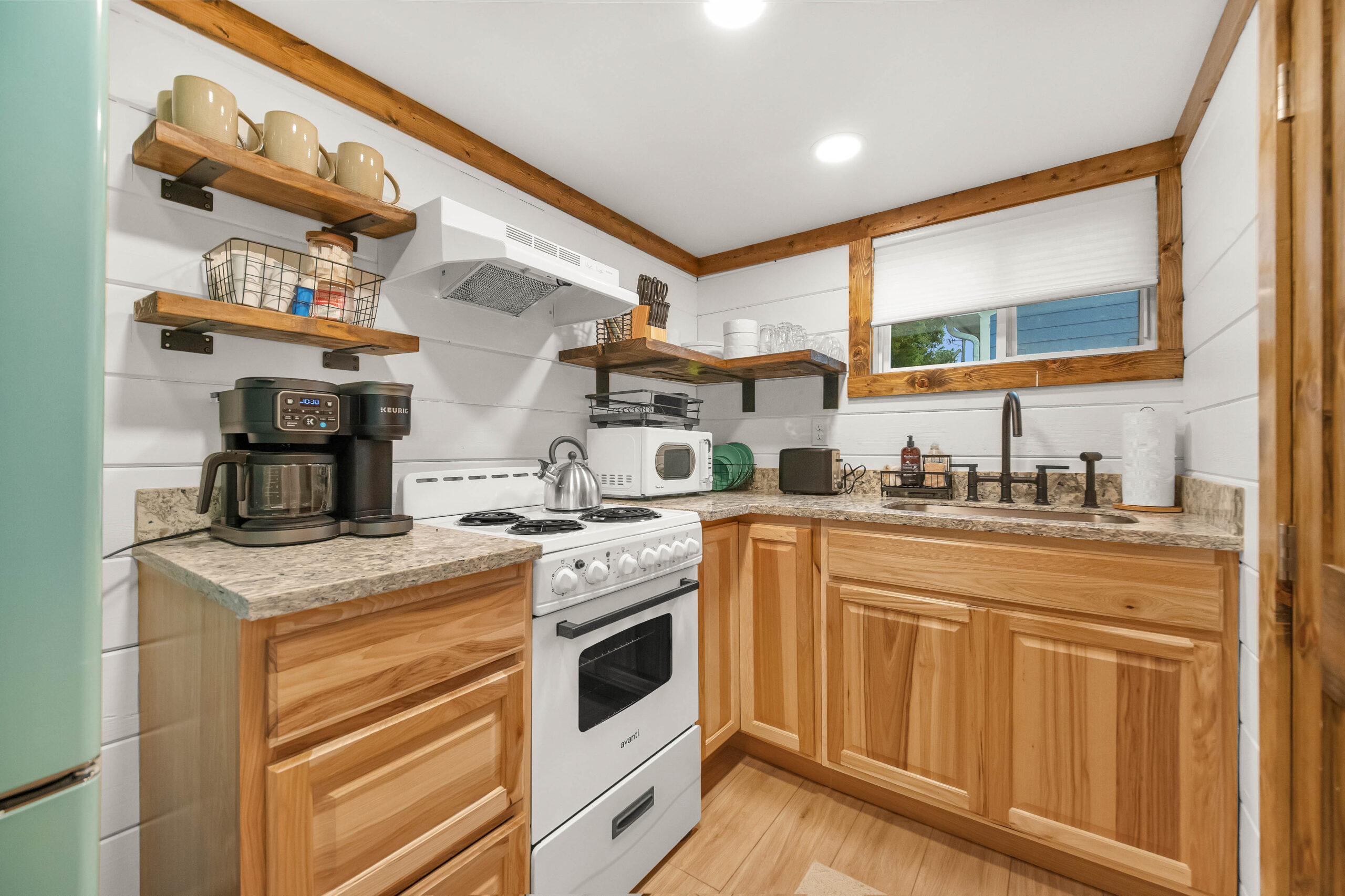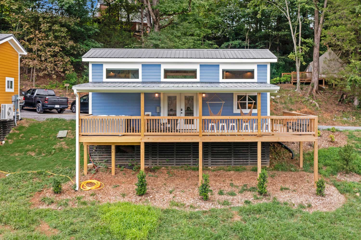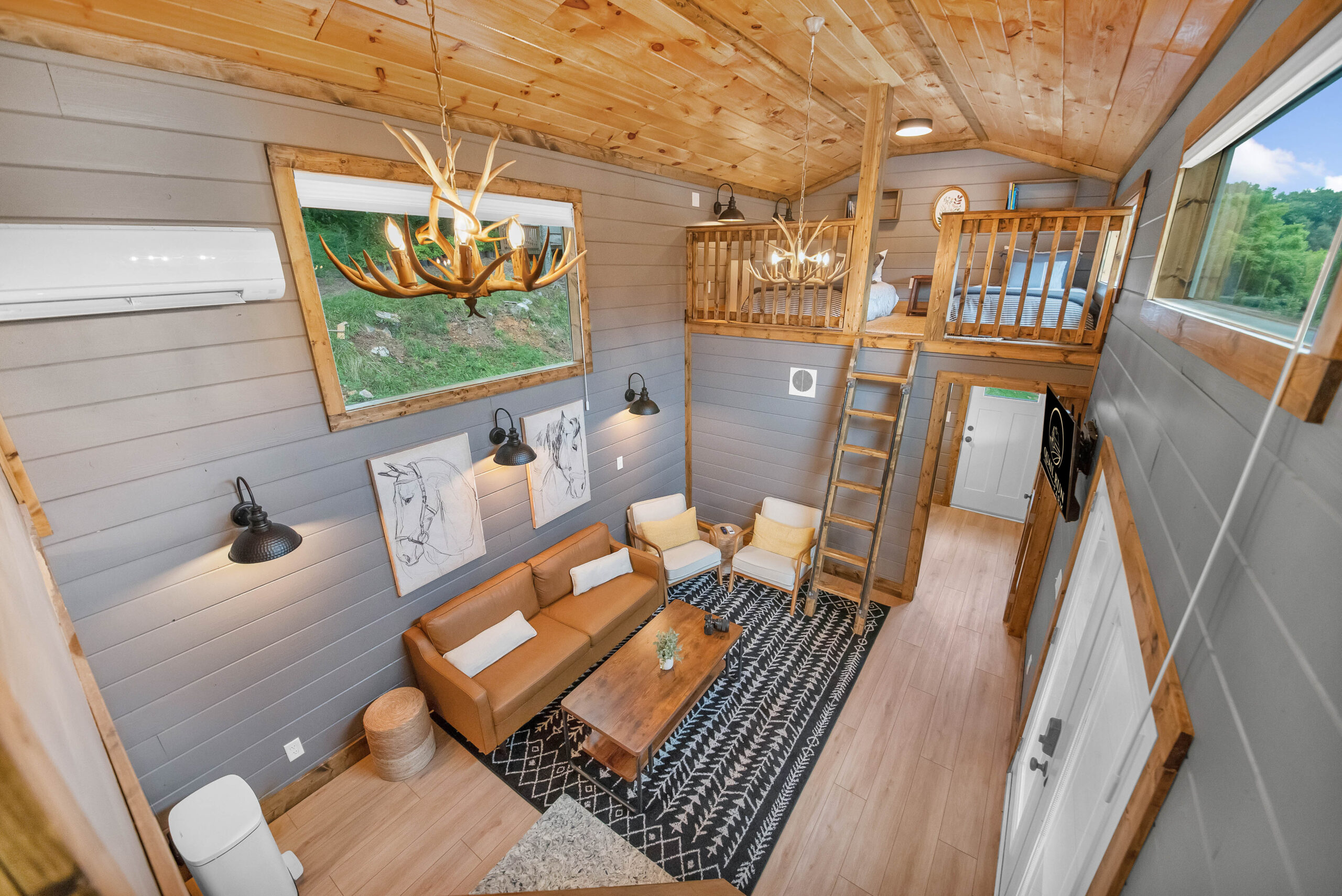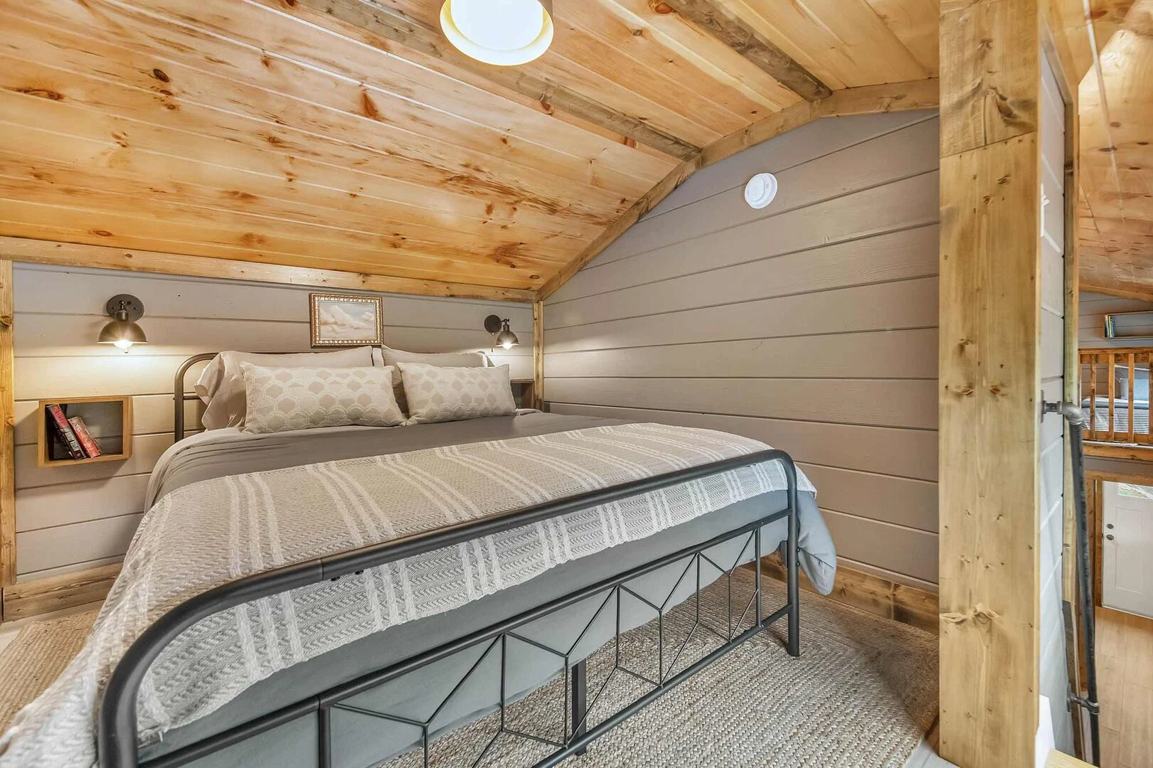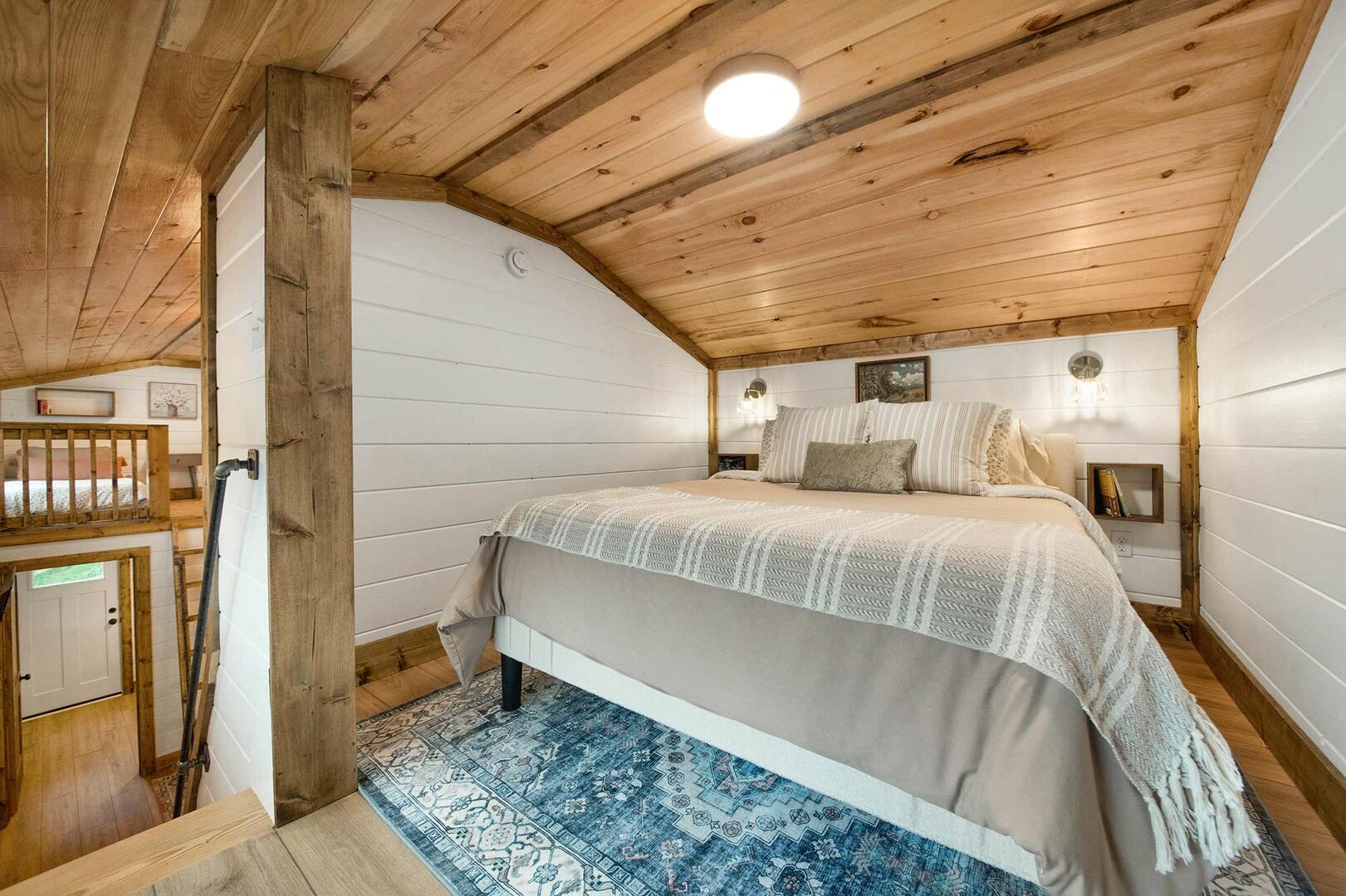Welcome to the newest cabins on the farm, where rustic charm meets modern comfort. Each cabin offers a full kitchen with updated appliances, making it easy to cook and gather after a day outdoors. Two queen bedrooms and a shared loft with twin beds comfortably sleep 6–8 guests, giving everyone space to relax. Step outside onto the wide front porch, complete with hammocks, chairs, and a private hot tub overlooking the mountains.
