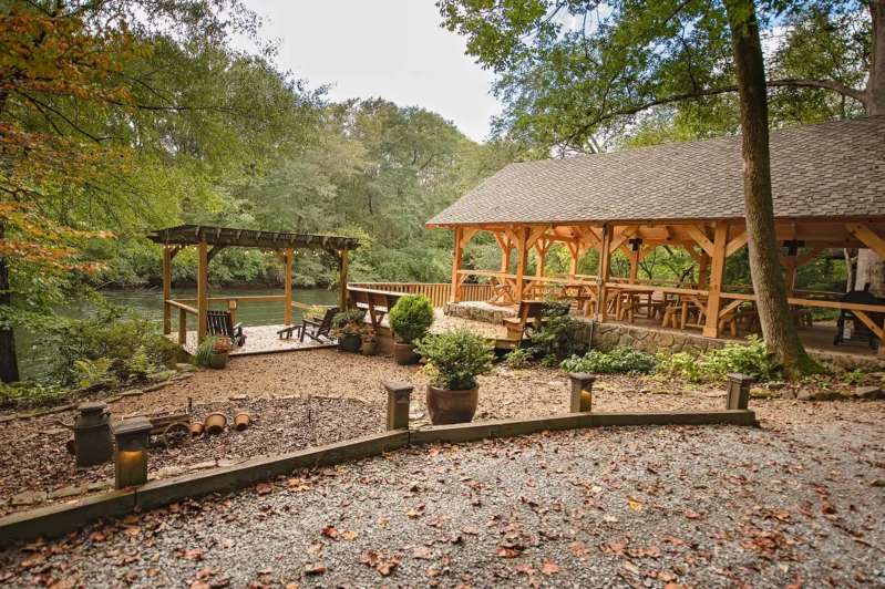 Currently, there are six cabins on the property, ranging from 600-1,000 sq. ft in size, and one large four-bedroom cabin perched high upon a hill over the river. Four of the cabins sleep 4-7 people while one larger cabin can house up to 8 People and the four-bedroom cabin can happily house 10. While all of the cabins are comfortable and have an almost elfish charm, three of them have a remarkable river view and all of them have private outdoor fire pits.